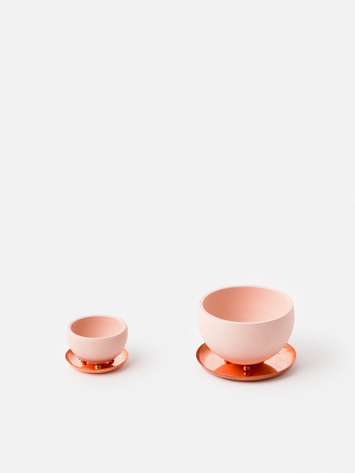 - 受皿には抗菌作用のある銅を採用。経年変化によって素焼色と馴染んでいきます。